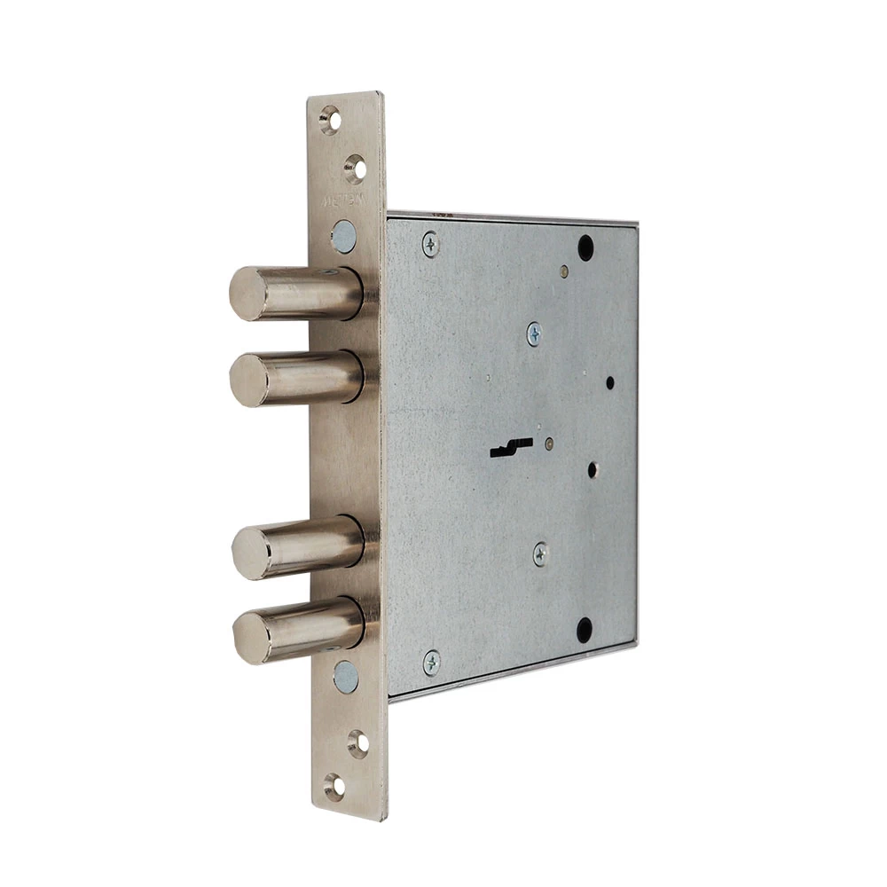 Замок врезной сувальдный ЗВ8 160.0.0 сертифицирован в соответствии с 3-м классом безопасности по ГОСТ. Подходит для установки во входные двери всех типов, в т.ч. укрепленные (бронированные). Замок запирает дверь четырьмя стальными ригелями диаметром 16 мм, которые выдвигаются из корпуса замка на 40 мм. В одном из ригелей расположен закаленный стальной стержень, обеспечивающий надежную защиту от перепиливания. Модель комплектуется четырьмя латунными ключами длиной 60 мм, лицевой планкой и декоративными накладками из нержавеющей стали. Замок не имеет защелки, поэтому рекомендуется в качестве второго запирающего устройства двери.