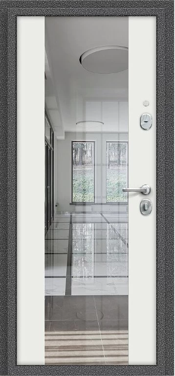 Надежная входная Дверь Браво Север-7 Антик Серебряный/Белый Зеркало премиум класса по цене 31 043 руб. Большая толщина стали защитит от проникновения в ваш дом, квартиру или коттедж. Используется очень качественная фурнитура: замки, цилиндры, ручки, защелки. Покрытие и отделка двери изготовлено под внимательным контролем производителя. Дверь имеет долгий срок службы и гарантию.